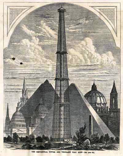 The Centennial Tower. Первый американский проект башни в 300 метров, 1874, созданный к Всемирной Выставке 1876 в Филадельфии.